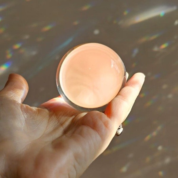 Es una esfera de cristal de vidrio fabricada, pulida y totalmente translúcida, sin burbujas, de calidad impecable.