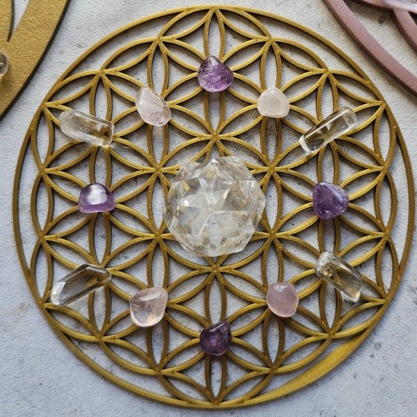 Flor de la Vida dorada en pla (polímero biodegradable de maiz).