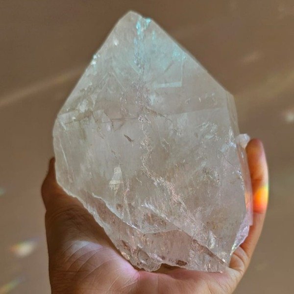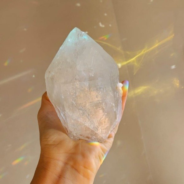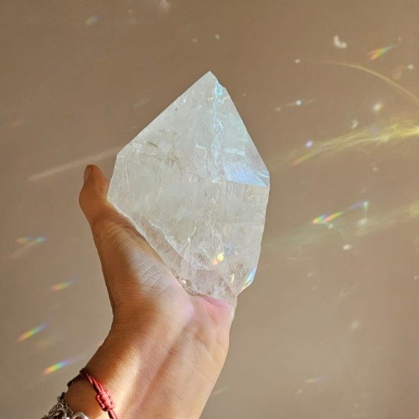Súper punta de cuarzo cristal con rutilos y arco iris.