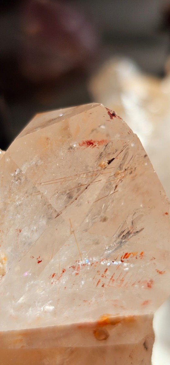 Drusa de cuarzo con montón de rutilos y maestrías.