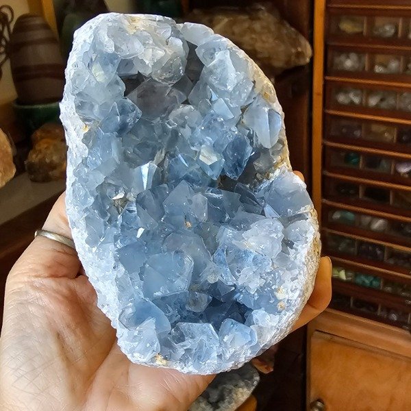 Bellísima Drusa de Celestina con muchísima cristalización y de un color súper intenso.