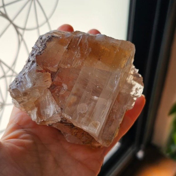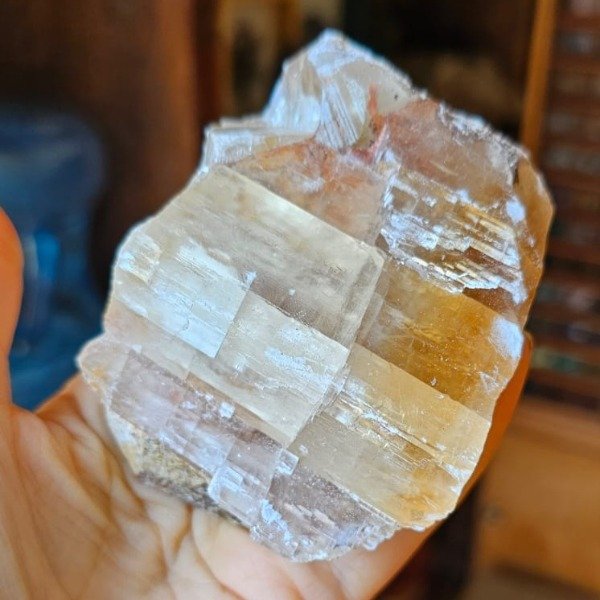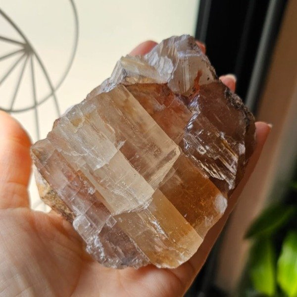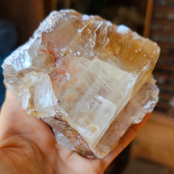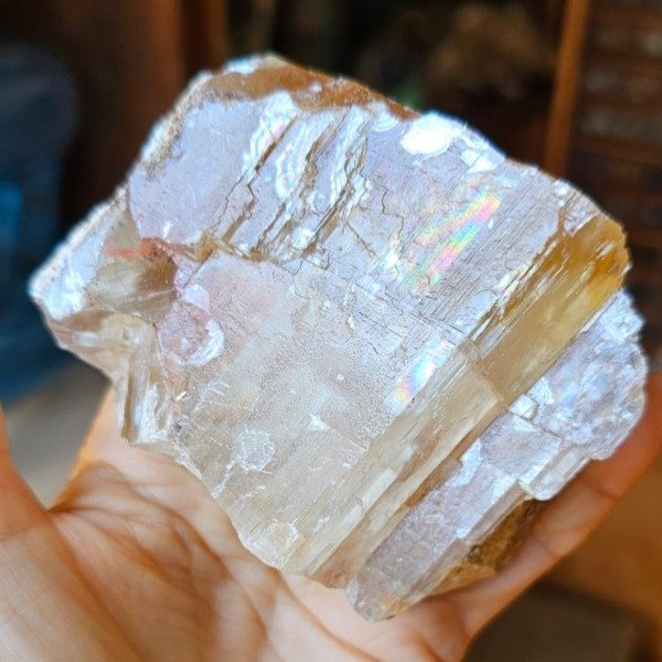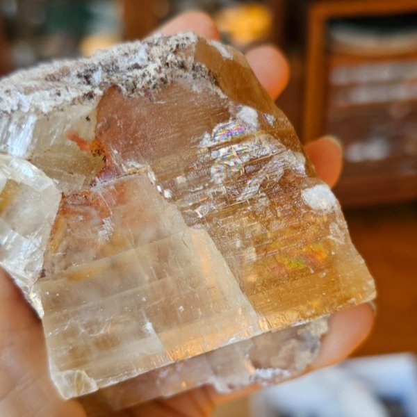 Hermosa calcita dorada con arco iris.