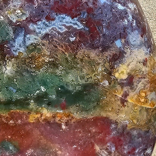 Pieza pulida de Jaspe Iraí Único, con base pulida.