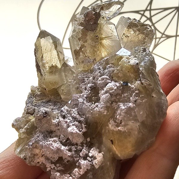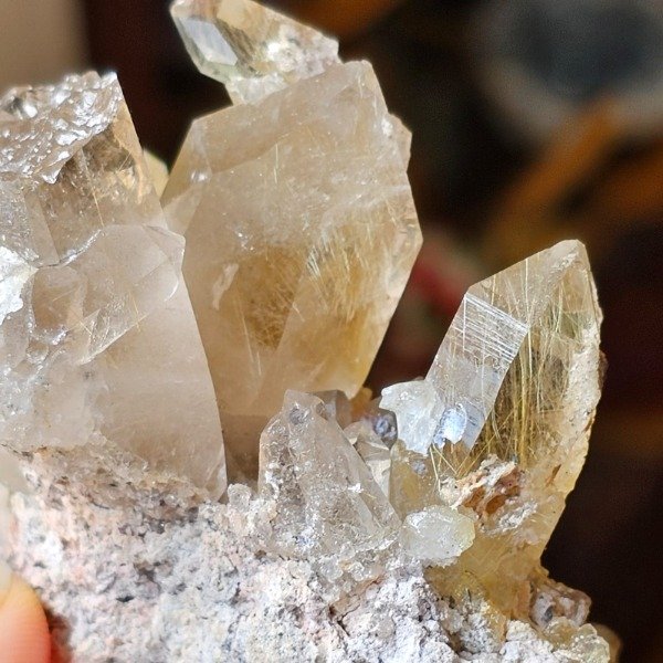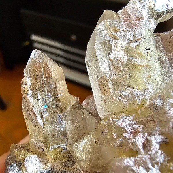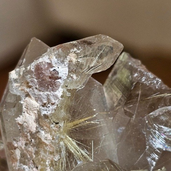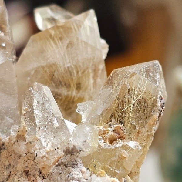 Drusa de cuarzo con explosión de rutilos.