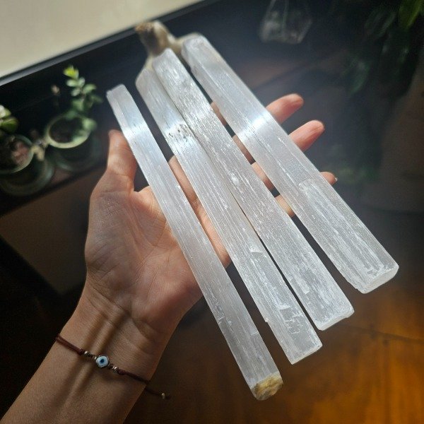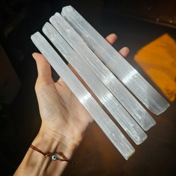Selenita de origen marroquí. Con el hermoso brillo lunar que las caracteriza.